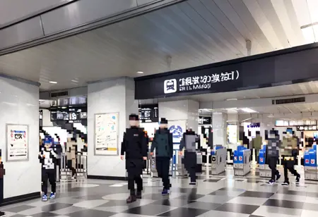 osakaeki, midosujiguchi, scenery, sign, real world location, indoors, tile floor