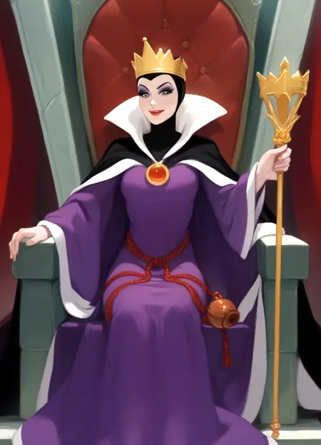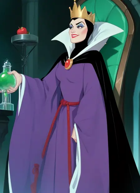 《白雪公主与七个小矮人》中的邪恶女王。作为一个单一女性形象颇为一致,但往往会让屏幕上的每个人都能变成邪恶女王。