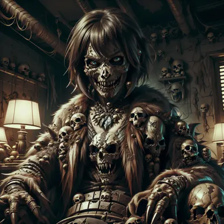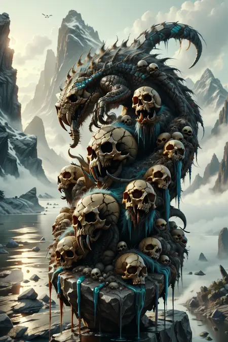 我主要使用 ~1.0 的权重(Flux | SDXL,SDXL 在 ~0.8 时骷髅数量会减少)及 1.0-0.8 的权重(SD1.5)生成。