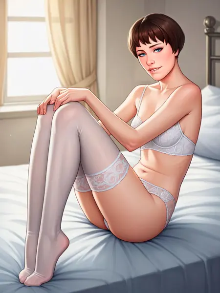 helper tags: lips, pixie cut, brown hair, blue eyes