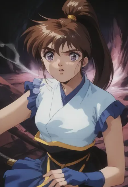 | 학습된 단어 | (anime of aiamts), 1girl, purple eyes, brown hair, high ponytail복사됨! sleeveless magic dress, blue fingerless gloves, blue legwear복사됨! pink ribbons around body복사됨! school uniform, yellow turtleneck, blue skirt복사됨! denim jacket, white shirt복사됨! |