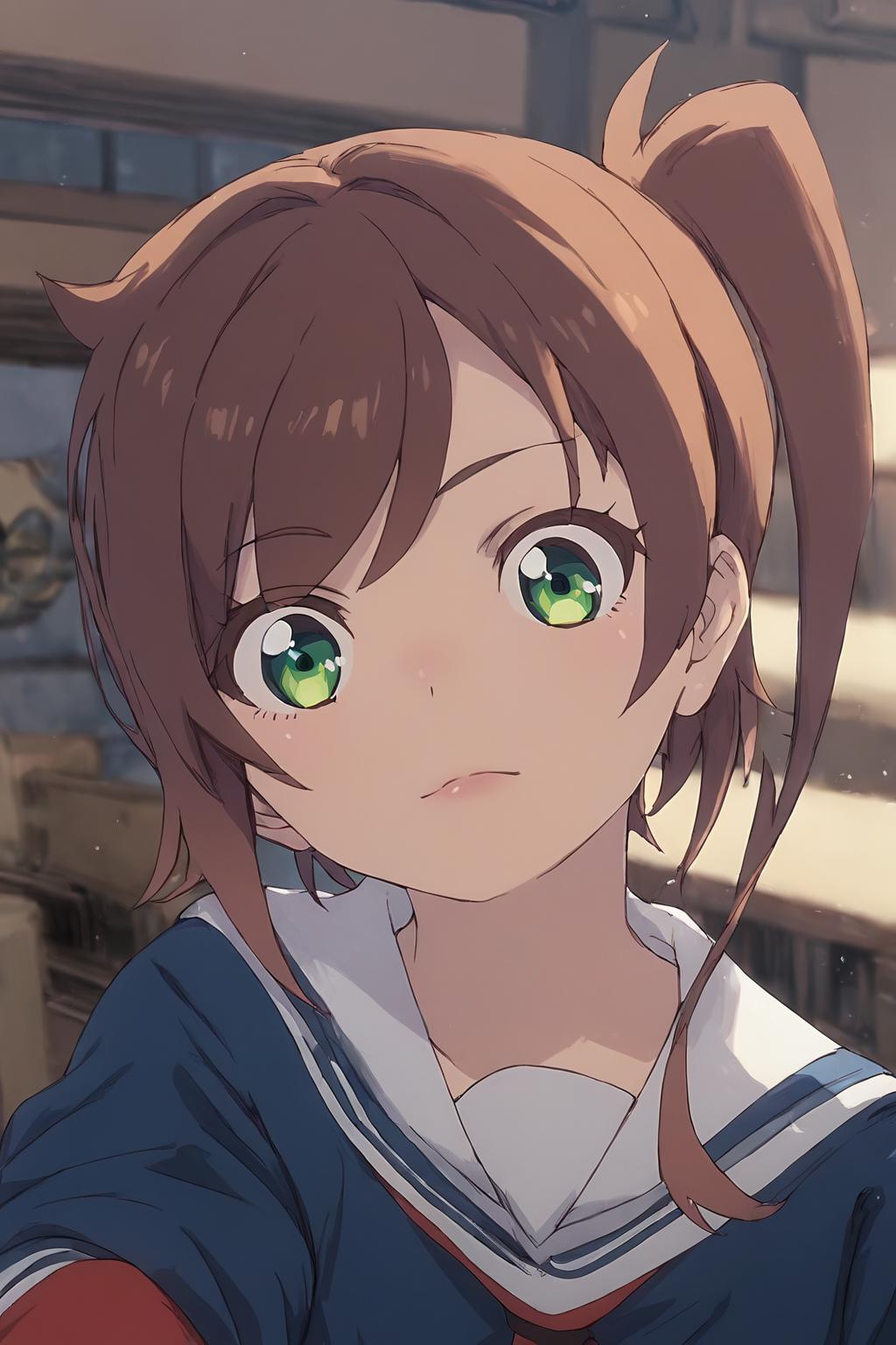 ShizuruChikura,棕色头发,侧马尾,绿色眼睛