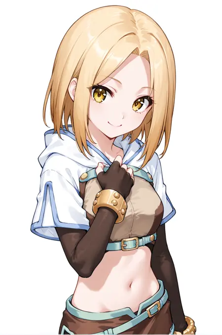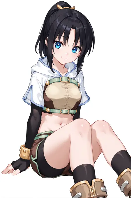 提示词:hunterRO,露脐,肚脐,短上衣,棕色短裙,黑色露指手套,裙下短裤,自行车短裤,肘部手套,腰带,袜子,短上衣,手镯,靴子