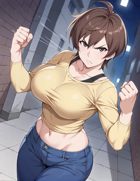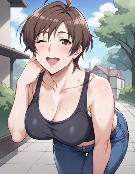 触发词:amaha masane, 1girl, 成熟女性, 棕色头发, 短发, ahoge, 棕色眼睛, 曲线身材