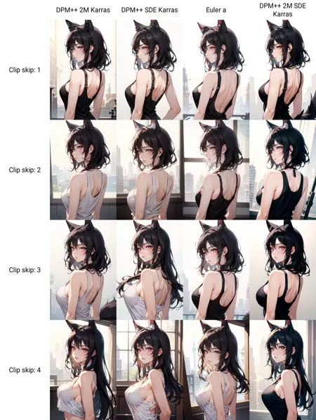 Sampler: DPM++ SDE Karras: 20~30 steps.
