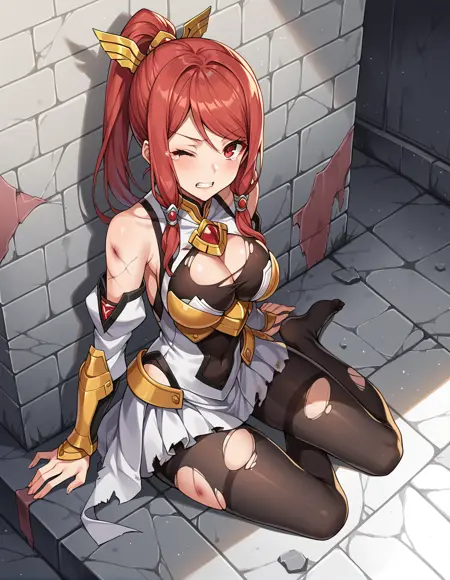 Trigger word: bbizayoi, 1girl, long hair, ponytail, red hair, red eyes