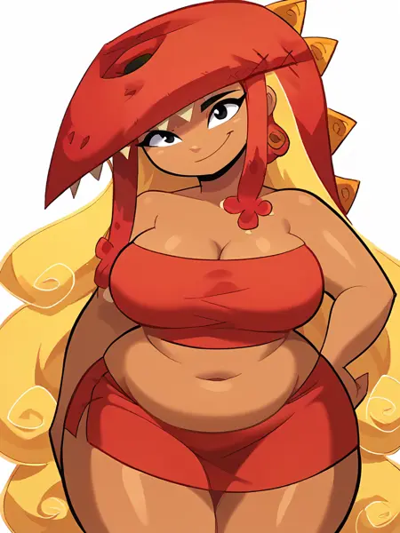 Edith_Up(辅助标签:深色皮肤、金发、红色服装)