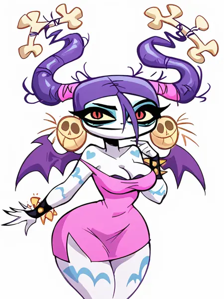 Voodoo_Mamma(辅助标签:苍白皮肤、粉色裙子、蝙蝠翅膀、骷髅)