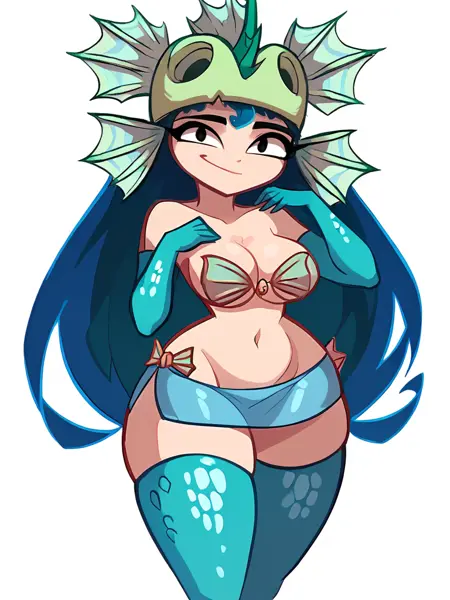 Annetta_Fish(辅助标签:苍白皮肤、鱼鳞、长手套、过膝袜、贝壳比基尼、长蓝发)