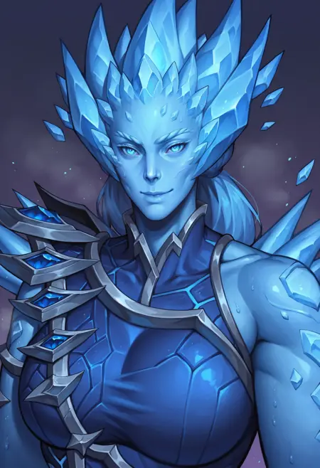 1girl, ice, blue skin, blue eyes, blue hair