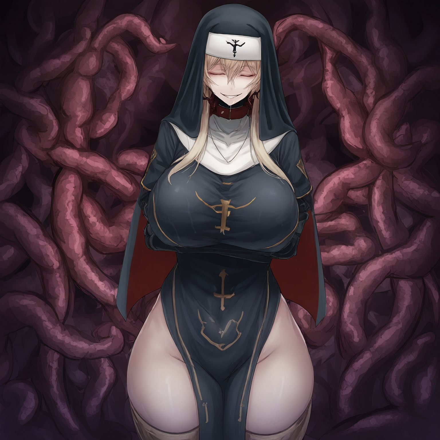 “Nun”(修女):可生成 Canvassolaris 风格的修女,为更精准可添加 “leg scar”(腿部伤疤)和 “mouth scar”(嘴部伤疤)。