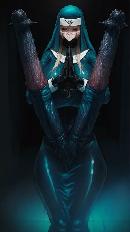 "Nun": Canvassolaris 스타일의 수녀 생성. 정확도를 높이려면 "leg scar" 및 "mouth scar" 태그를 추가하세요.