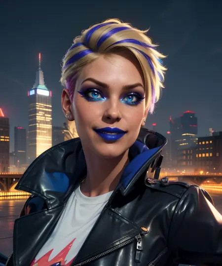 Viola or violaxl, blue eyes, short hair,two-tone hair, blonde hair, blue lipstick,eyeshadow,
