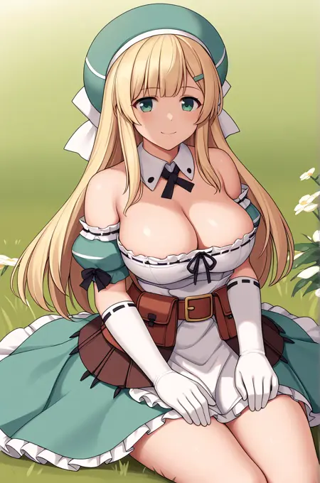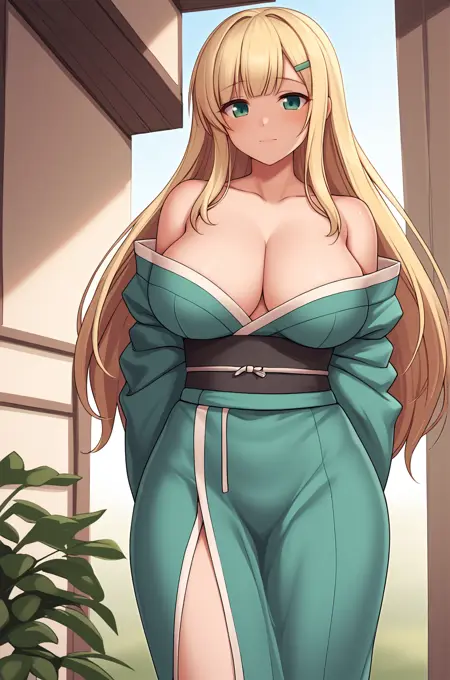LoRA 的触发词为 "Yomi_IL, 绿色眼睛, 金色头发, 长发, 绿色发夹, 大乳房"。