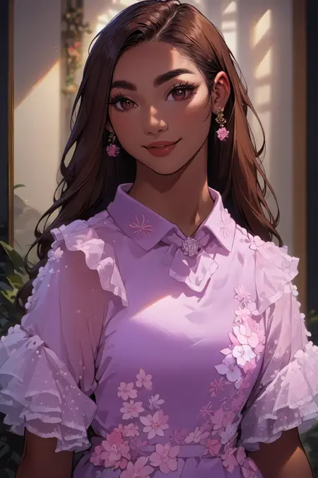 また:(ピンクの)ドレス、頭に花、サンダル、目の下のほくろ。ときどき「肌の黒い女の子」を推奨します。