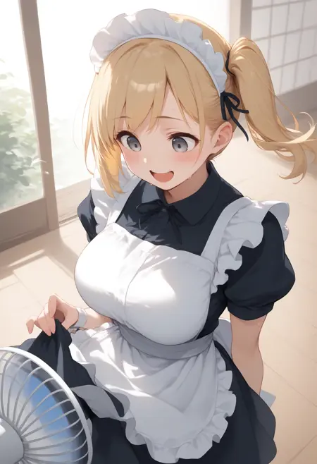 Illustriousは元々それっぽい体勢を高確率で出せるので扇風機の向きの安定化と学習していない体勢を追加したつもりです。