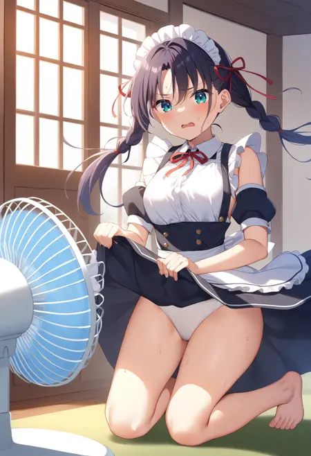 [Illust&XL&Pony] fanning crotch / electric fan / 扇風機スカートめくり / 股間冷やし