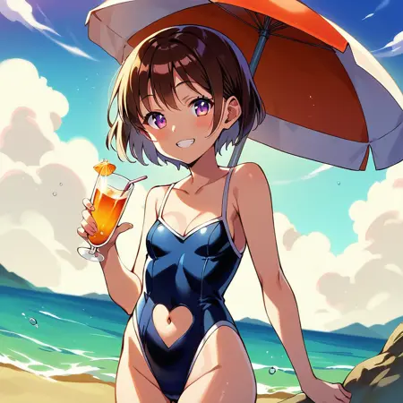 これは、衣装のおへその部分にハート型の切り抜きを作るLoRAです。