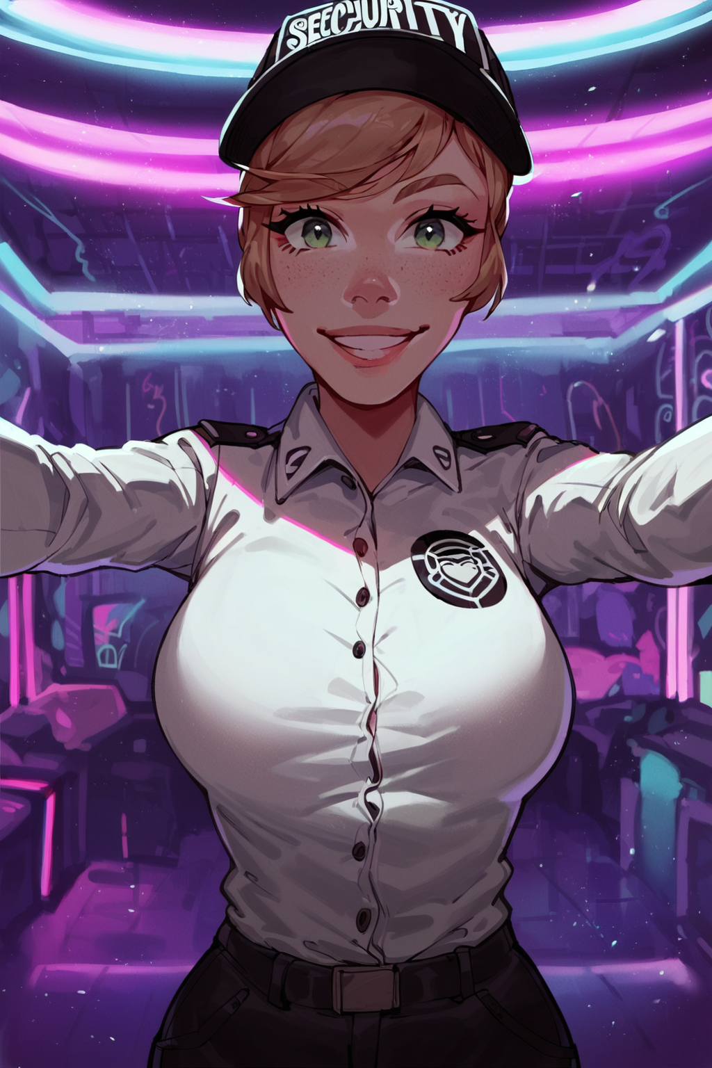 如需,使用Vanessa LoRA。帽子上的“安全措施”无论如何都会导致问题,因此使用修复绘画或自行添加并使用图生图是最优解决方案。可能稍微过曝了,建议调整强度尝试。