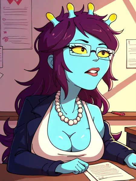 유니티, 머리 안테나, 파란 피부, 안경, 보라색 머리카락, 목걸이, 노란 공막