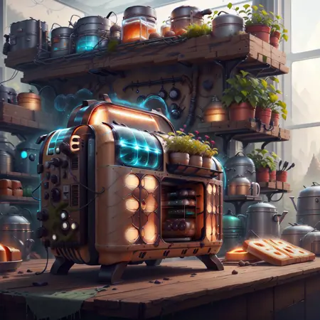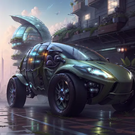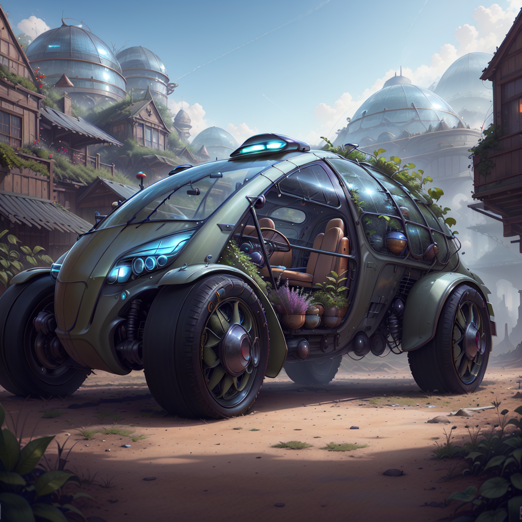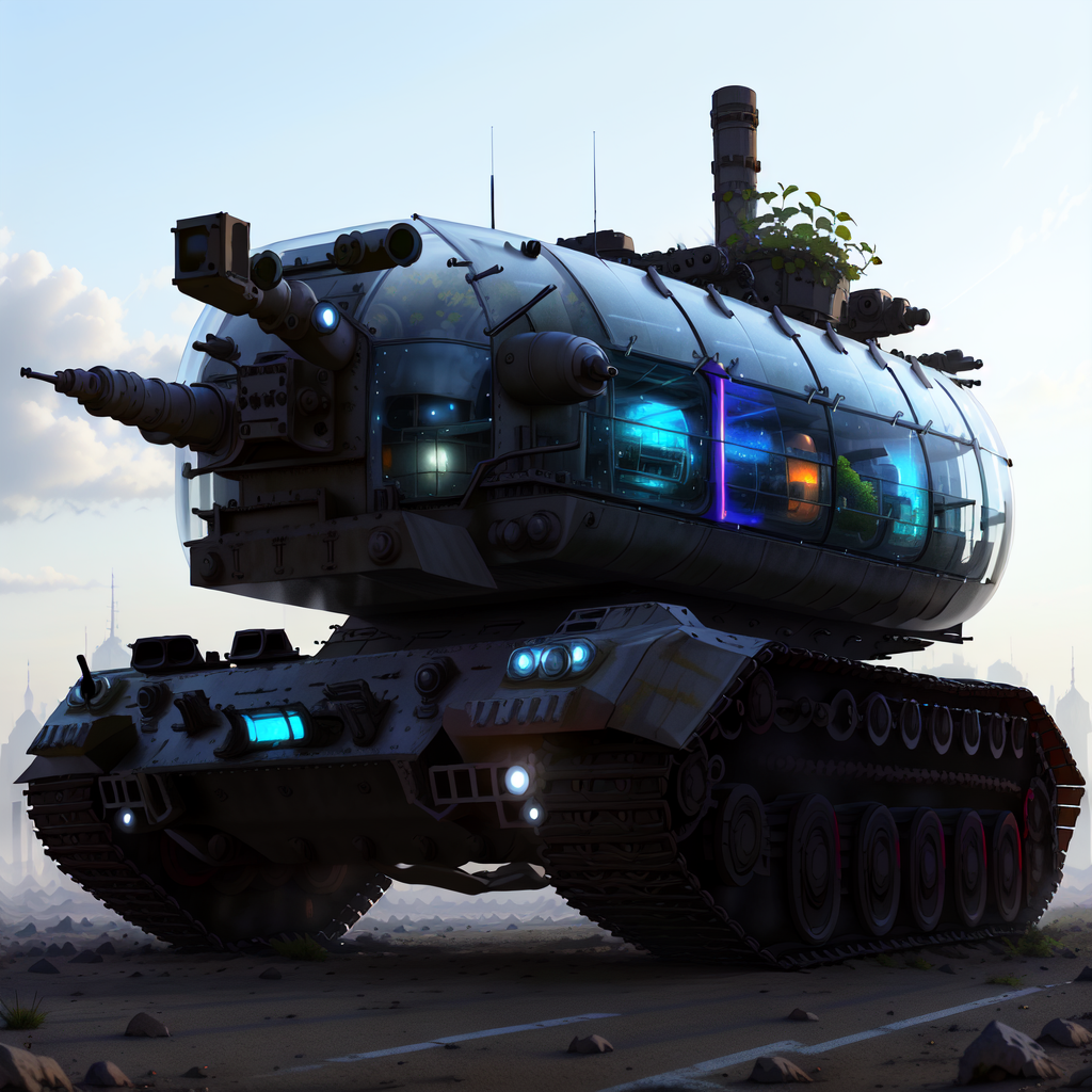 现在它能生成坦克(以及其他机械),这些机械同时兼具温室功能,并且以其中所培育的植物为动力(以某种方式)。使用触发词“green-powered”来生成此类事物。