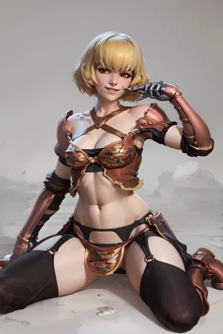 Trigger + アウト fit: clementine (overlord), armor, garter belt, gauntlets