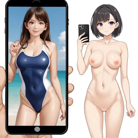 タグの最初に Photo_Comparison, NSFW を記入し、その後背景の女性について記述してください。次に 携帯電話、スマホ、スマートフォン、手に持つ、画像(他の類似プロンプトも使用可)を記入。その後、画像内の女性に関するプロンプトを記入してください。例: セックス、膣、全裸、NSFW など。