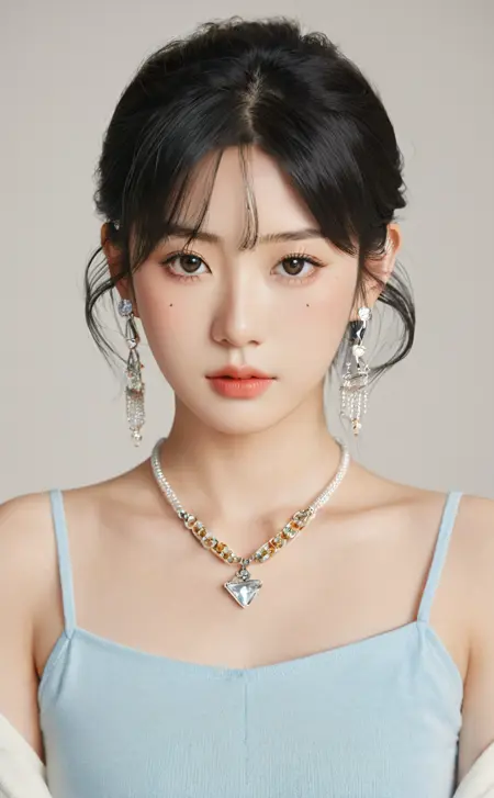 high-end fashion photoshoot, product introduction photo, popular Korean makeup, aegyo sal, Sharp High-Quality Photo, studio light, medium format photo, Mamiya photography, analog film, Medium Portrait with Soft Light, real-life image, refined editorial photograph, raw photo, real photo, Scanned Photo, film still