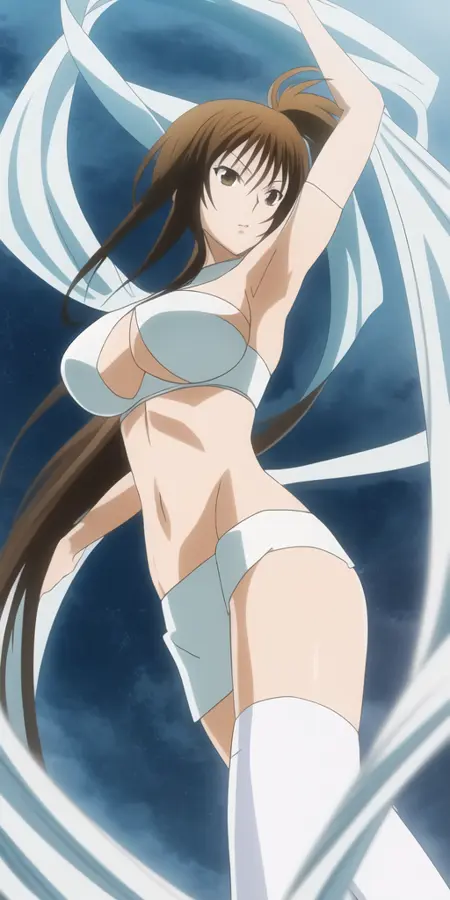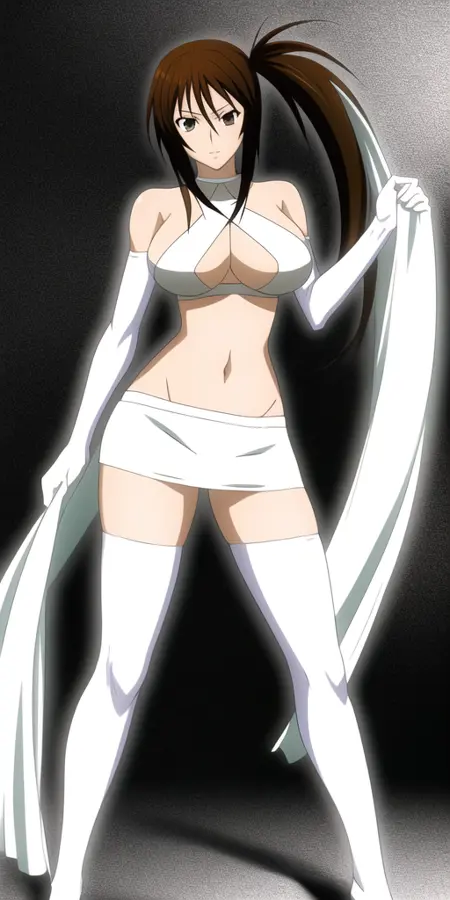 White_crop_top_White_microskirt_White_thigh_boots_White_elbow_gloves_White_shawl_Criss-cross_halter_Cleavage_cutout:她的遮面Sekirei服饰。