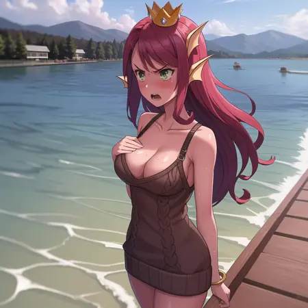 Helpful positives: pink skin, crown, head fins, jewelry, dress