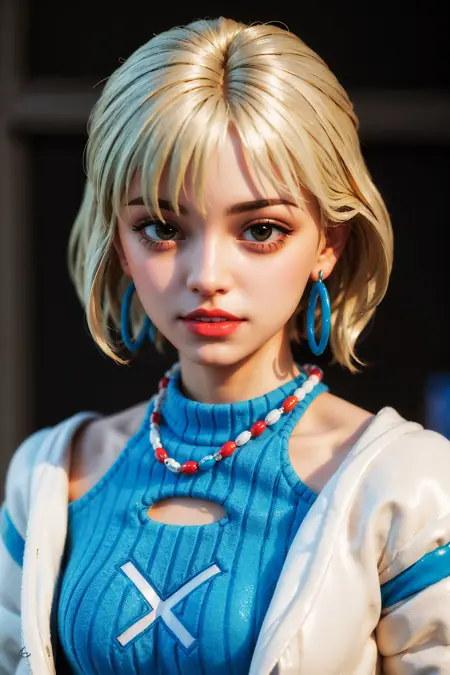 触发词:blondeeviegc、金色头发、鲍勃头、圆环耳环、黄眼睛、刘海、妆容