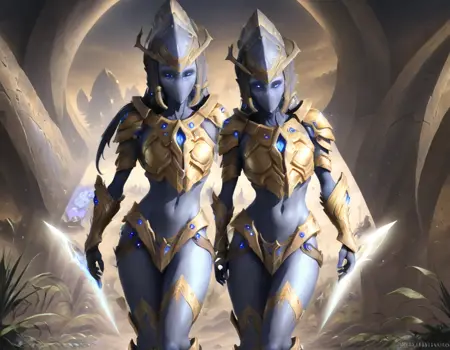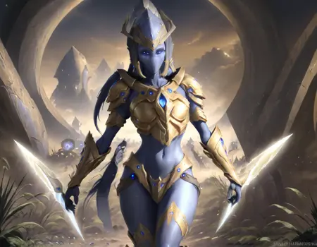 In the expansive universe of StarCraft, a rare cadre of female Protoss warriors, known as the Golden Templars, stands distinguished by their shimmering armor forged from the sacred Jorium crystals of Aiur. These elite warriors are not only guardians of their race but also masters of the Khala, wielding psychic powers that can devastate their foes or shield their allies. Through rigorous training and deep spiritual connection, they have harnessed the ability to manipulate energy, making them formidable adversaries in battle. Their golden armor not only symbolizes purity and commitment but also serves as a beacon of hope and resilience against the encroaching darkness of the universe.