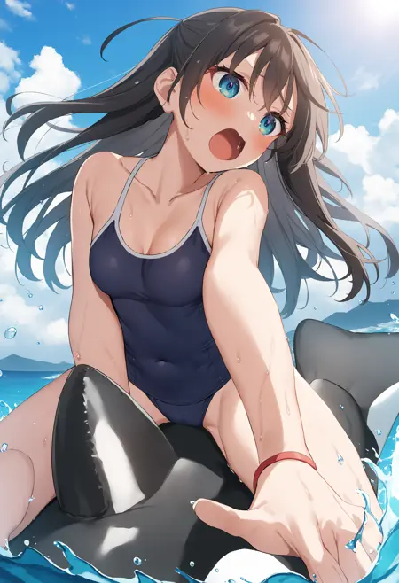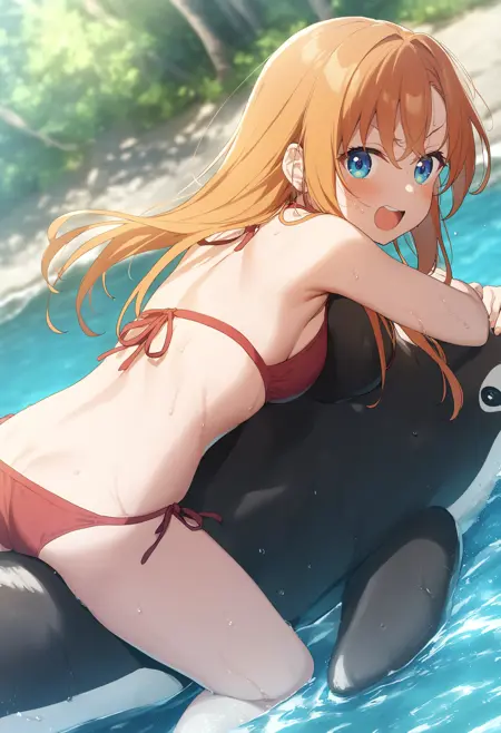 With just the trigger, the orca will appear, but you won't be able to get the pose you want, so add your favorite swimsuit and location prompts.