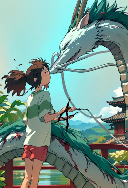 Lora with pack of characters from the movie Spirited Away In the pack you will find Chihiro, Haku in human form and Dragon, the old Yababa, the baby mouse and bird and the dust ollines. I have also managed to make a lora that several characters can appear in. at the same time in the same image, xmultiplex is the keyword that exists when there are several characters in an image, you just have to add the keywords of each character and you have it!! If you like it, I can receive commission orders at a good price with buzz and make your own pack