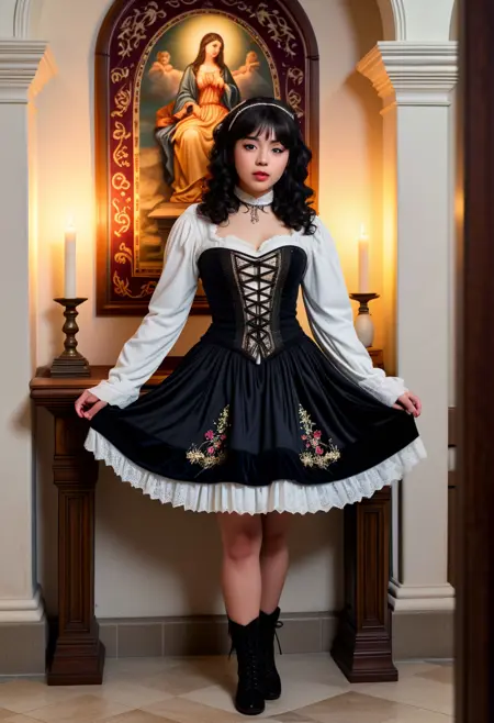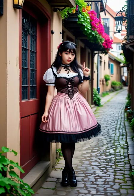 __cf-gothic-lolita/prompt-full__ : prompt the costume with girl and location