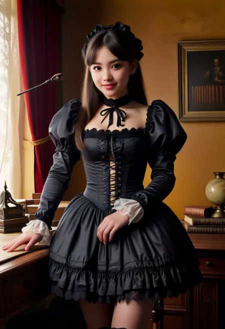 __cf-gothic-lolita/prompt-full__ : prompt the costume with girl and location