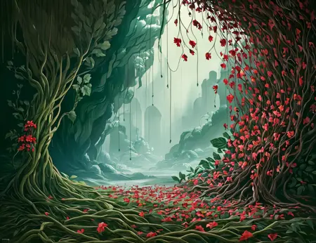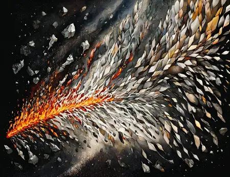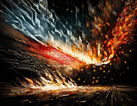 Try any illustration, monochrome, fractured, dissolve related trigger words to get even more out of it. :)