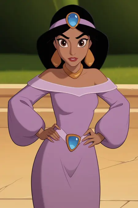 Lora for Princess Jasmine. All images were made using the AutismMix_confetti model found here on CivitAI. The recommended strength is 0.7, but anything up to 1 should be fine. There are 4 different outfits this was trained on all from Aladdin. When trying to generate one of these outfits it may be beneficial to put the tags for the outfits you don't want in the negative prompt.