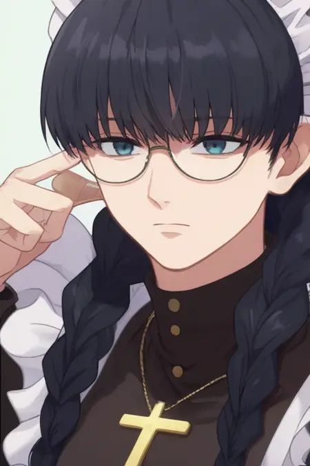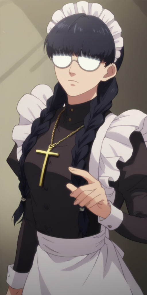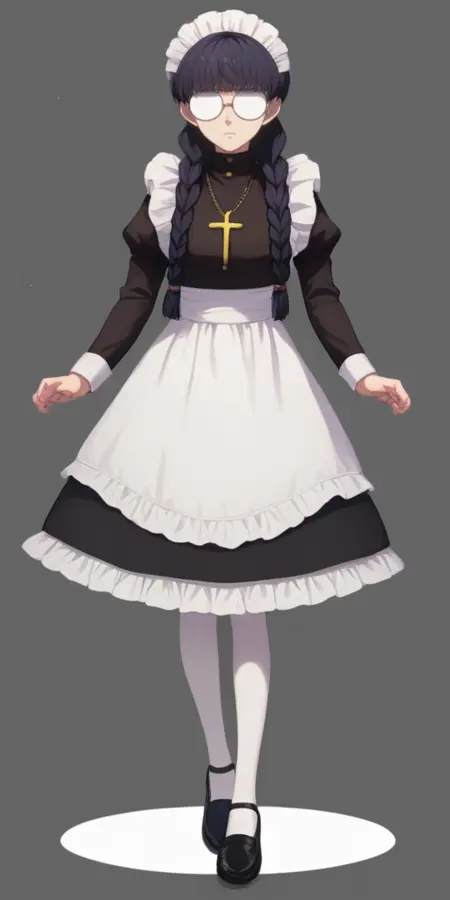 로베르타의 디자인이 마음에 들어요. 그녀는 땋은 머리, 안경, 메이드 복장, 그리고 포커 페이스를 하고 있죠.