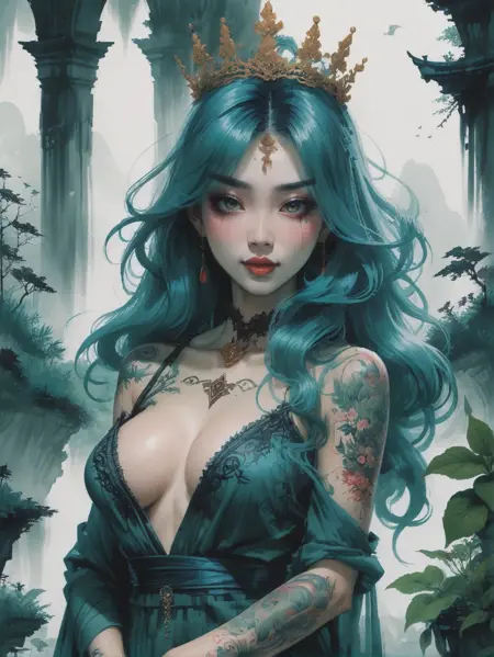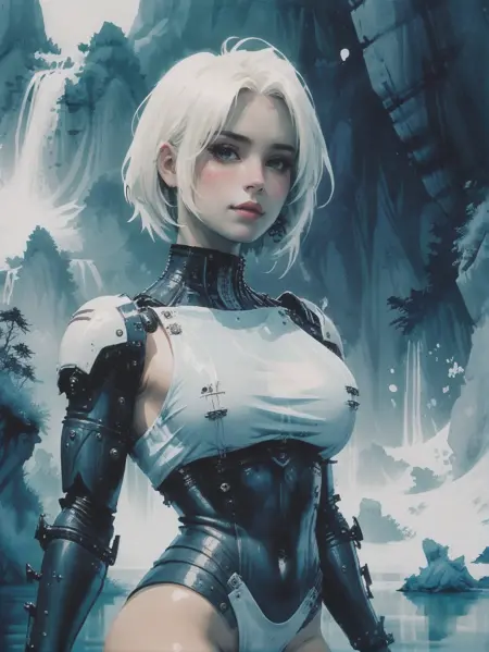 以水墨画风格呈现您的图像。此DoRA并非试图完全还原水墨画(已有其他LoRA专为此目的),而是更倾向于一种现代融合风格,极具水墨画的韵味。当您在提示中加入能推动风格走向新方向的元素时,此DoRA表现最佳。