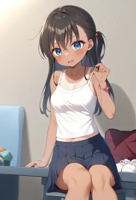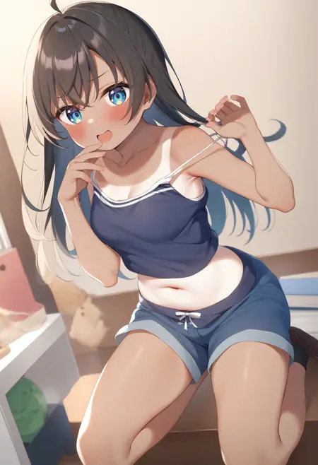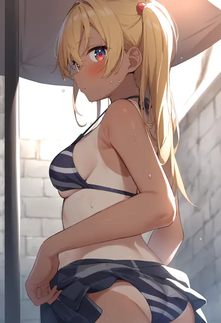 露出の多い服、ビキニ、全裸、スク水の跡が見える格好であれば動作します。水着を引っ張って跡を可視化するシチュエーション(clothes pull, swimsuit pull, bare shoulders, pulled by self, undressingなど)で生成できますが、Animagineが学習した水着の形状はそれほど正確ではなく、成功率は低いです。そのため、専用のLoRAを別途用意していますので、そちらをご利用ください。