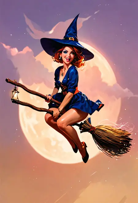 这个LoRa是为以下悬赏任务制作的:骑扫帚(SDXL)