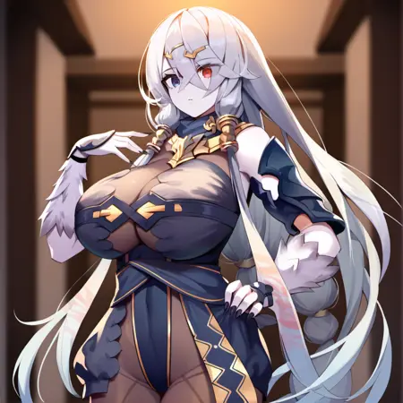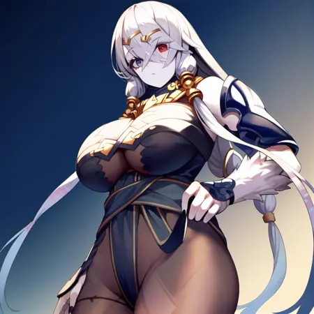 Trigger words: Lila_Decyrus_Pony, heterochromia, eyes visible through hair, pale skin, bodysuit,