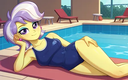 一度だけ canonキャラとして、彼女は番組内に登場していたが、その時間はとても短かった。PonyDiffusion v6 XLのチェックポイントを使って彼女をプロンプトする方法が見つからなかったため、彼女のLORAを作成することに決めた。LORAのデータセットは、実際の番組からのスクリーンキャップ画像と、さまざまなアーティストによる彼女の画像で構成されている。