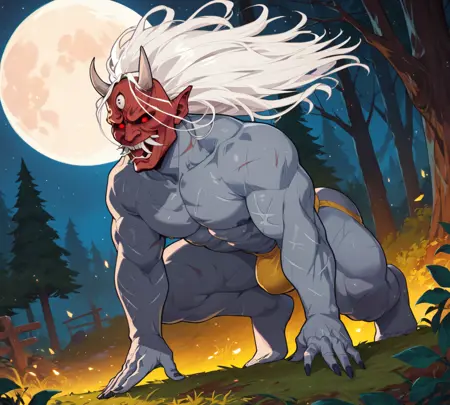 TheOniDBD、Dead By Daylight、鬼怪、恶魔、人形、红色面具、长白发、灰色身体、男性、肌肉发达、男同性恋