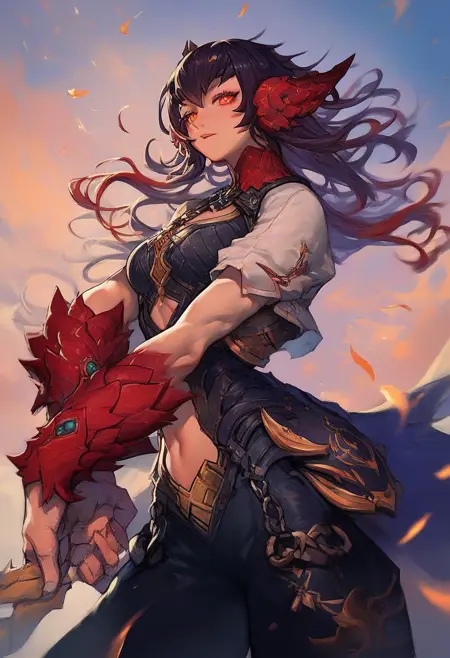 This XL version of a Hyung-Tae kim style is able to reproduce the feeling of the artist which is reflected in the skin textures, stylized figures and particular faces with glossy lips and wide eyes! Images were taken from various game asets to ensure the quality of the results, however, since the sources were on low resolution, and game assets often include character illustrations in a full body, eyes were rather small. In short, this model stuggles a but drawing faces of zoomed out characters. This issue can be fixed with either post processing, advanced prompting or simply by creating close-up art.