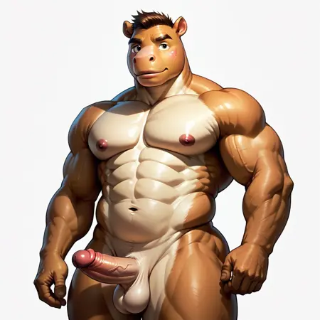 score_9, gray background, solo, solo_focus furry, anthro, female, hippo, nude, big breasts, wide hips, thick thighs, curvy figure, pose sexy, dynamic angle