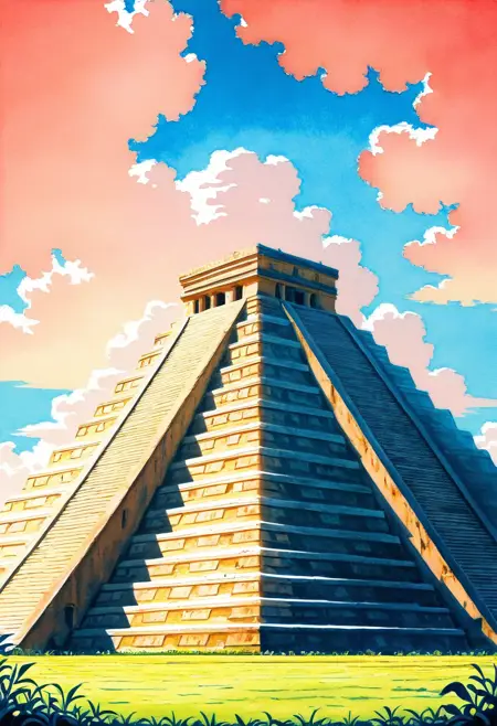 Chichen Itza: Temple of Kukulcán (Yucatan, Mexico) [Illustrious & Pony]