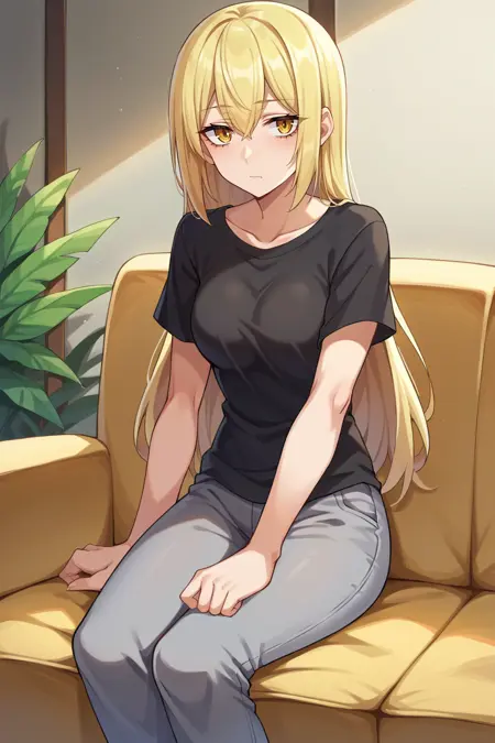 • Add "hairband, armored dress, gauntlets, black gloves, thigh boots" for her armored dress.