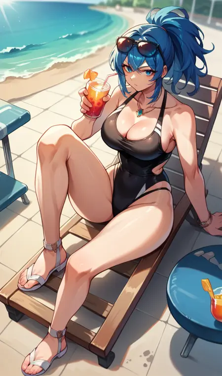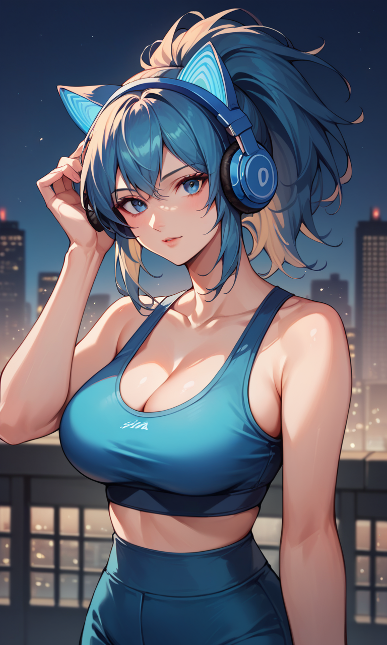确保在所有生成中使用“蓝色头发”、“蓝色眼睛”和“马尾辫”。